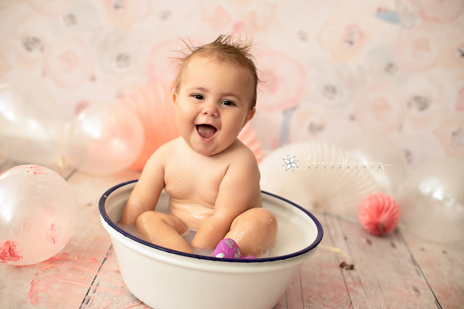 Alissia war sich nicht ganz sicher, was sie von dieser ganzen Geburtstags-Geschichte eigentlich halten soll. Zugegeben, da soll man plötzlich in einer Torte rummatschen obwohl man zu Hause lernt, möglichst schön zu essen? Ja, das kann etwas verwirrend sein, aber zum Glück gibt es nach jedem Tortenspass ein Blubberbad und Alissia fand dieses um Welten lustiger, als das Torte essen. Kein Problem, kleine Maus, dann gibt es eben viel mehr wunderbare Badebilder von dir :). Zum fressen süss warst du selber ja sowieso schon genug, hihi.