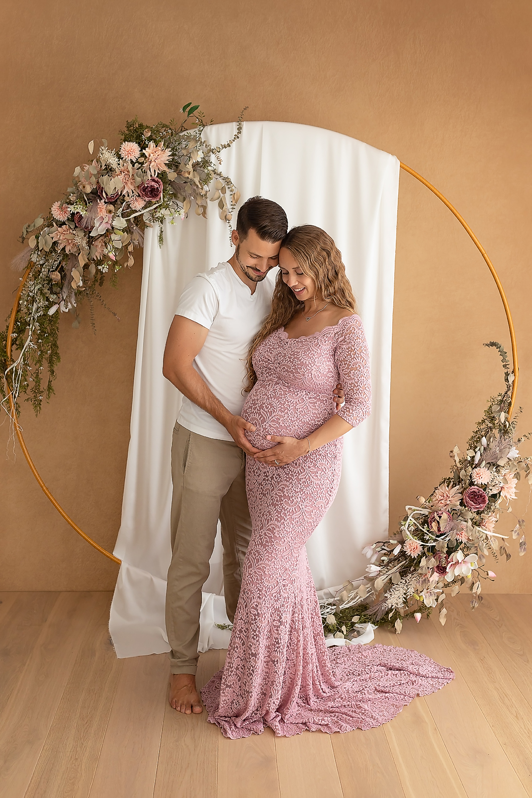 Nachdem ich diesen wunderschönen Blumen-Ring für die Frühlings-Minishooting habe erstellen lassen, verliebten sich ganz viele Schwangerschafts-Kunden ebenfalls in das Setting und so freute ich mich, dass dieses noch viele Monate länger im Einsatz bleiben durfte. Es ist aber auch einfach romantisch schön, findet ihr nicht auch? Ich habe mich so fest auf das Wiedersehen gefreut, danke euch fürs schöne Shooting!