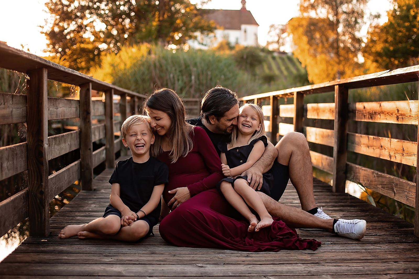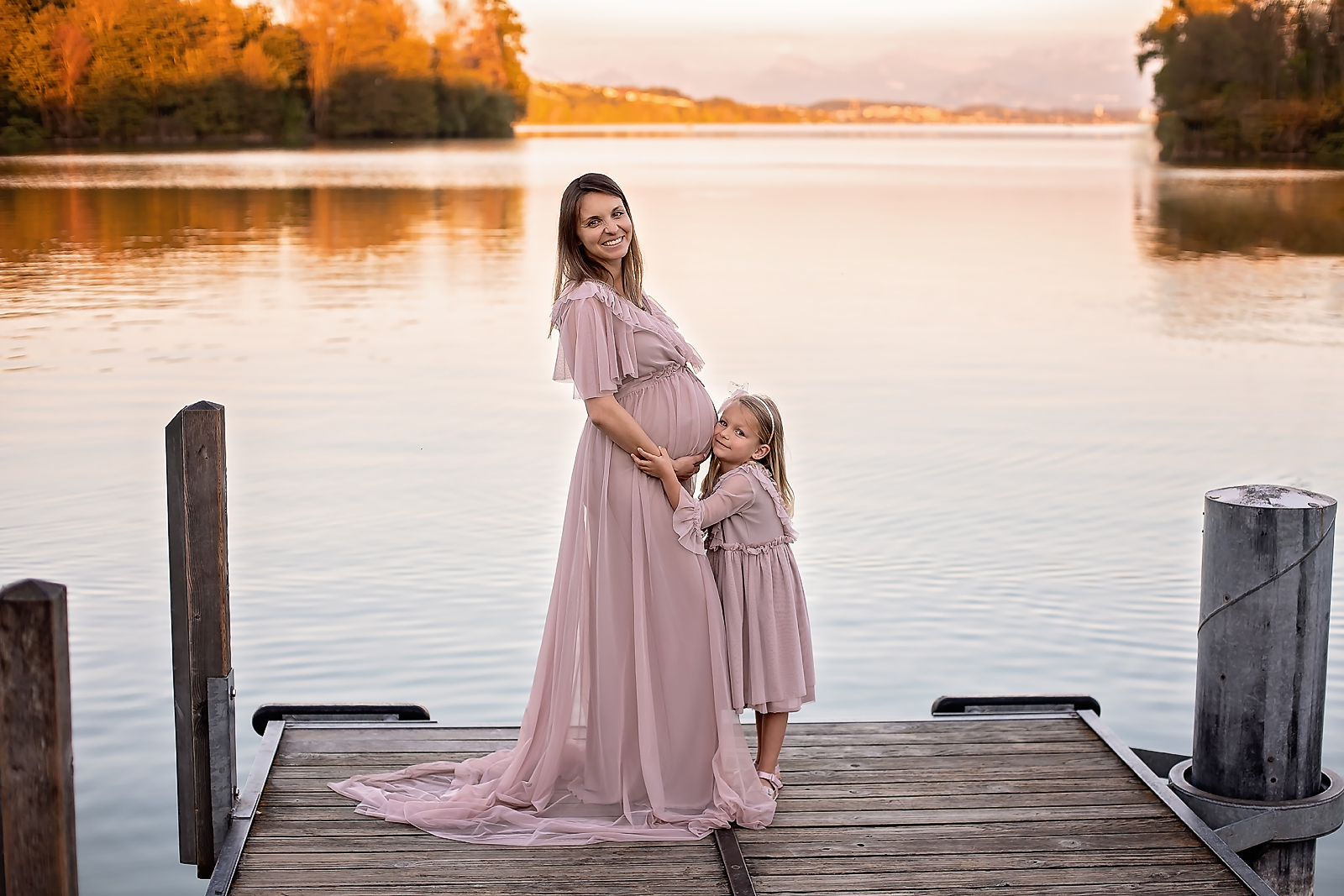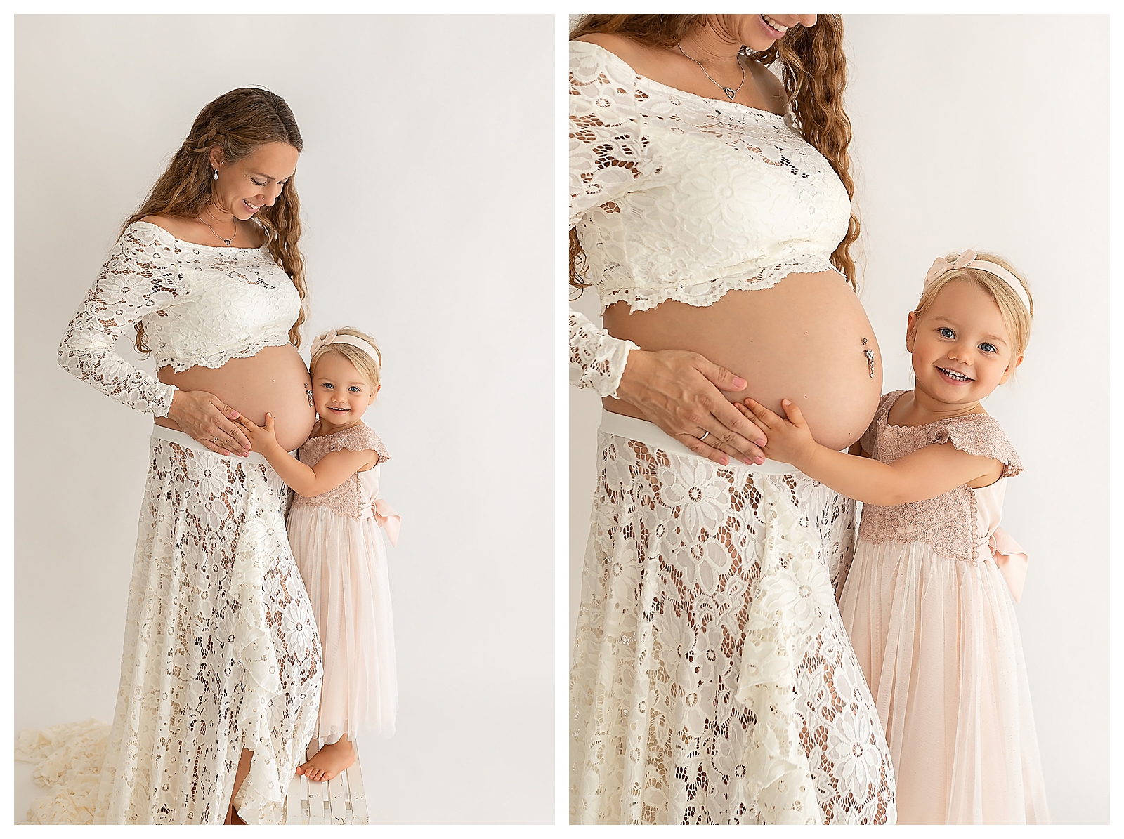 Babybauchfotos mit grosser Schwester im Fotostudio